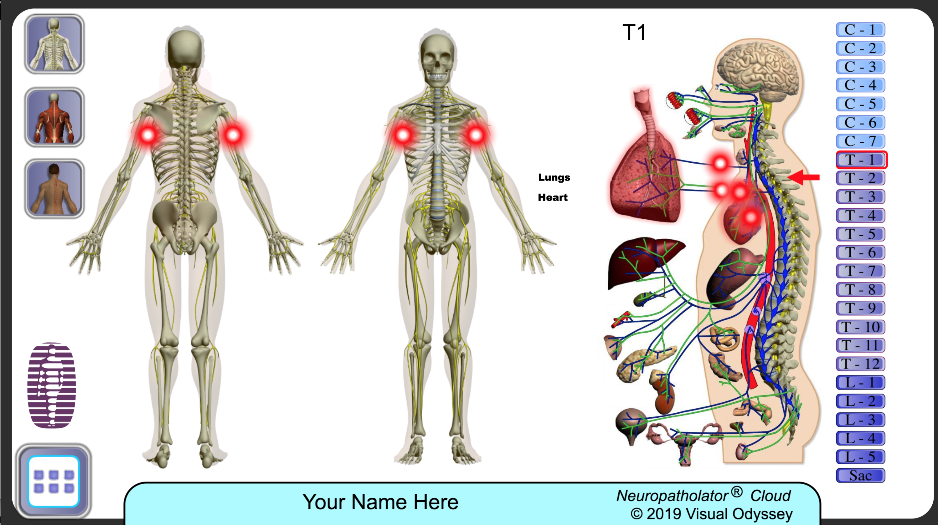 2. An Interactive Neuropatholator that shows ANS (organs) and Nerves simultaneously when clicking (tapping) the vertebrae which is equivalent to the famous System 3 Neuropatholator (now $3,000 on EBay)